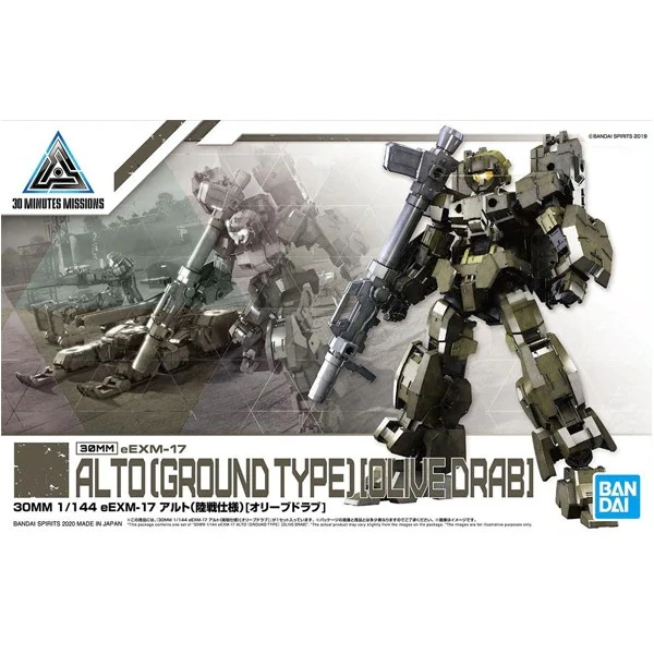 The eEXM-17 Alto (Ground Type ver.) returns to the 30MM series in a new brown shade! The Alto can transform into a tank, and includes new equipment such as a backpack for land warfare. A customizable bazooka is also included, as well as additional parts that can be equipped on Porta Nove. Build your Alto as-is with its included parts, or create your own original machine by mixing parts with other, separately sold 30MM kits!